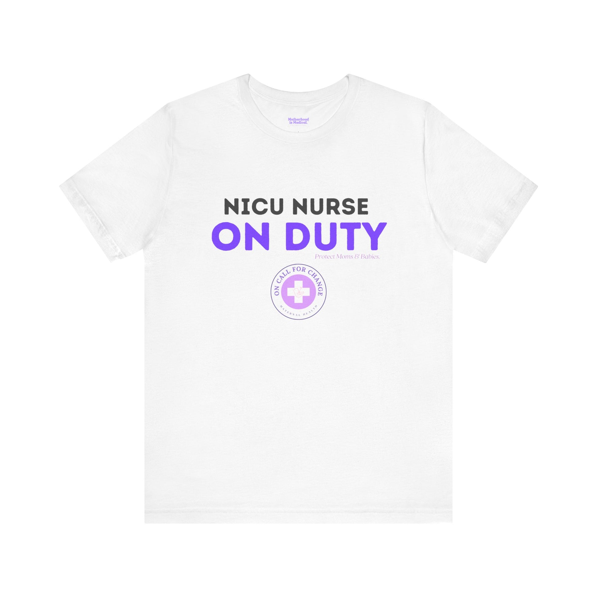 Honor the expertise and compassion of NICU nurses with the NICU Nurse On Duty Tee. Bold and meaningful, this shirt represents the lifesaving role of nurses who care for the most vulnerable newborns. Perfect for wearing on the unit or at advocacy events, it calls attention to the critical importance of neonatal care in maternal health.